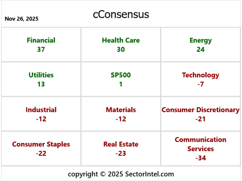 This publication presents an algorithmic indicator of market sector opinion. The indicator ranges from pessimism, -100, to optimism, +100. Send email