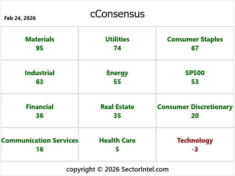 This publication presents an algorithmic indicator of market sector opinion. The indicator ranges from pessimism, -100, to optimism, +100. Send email